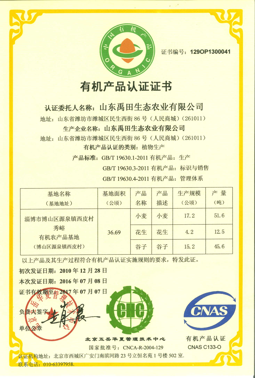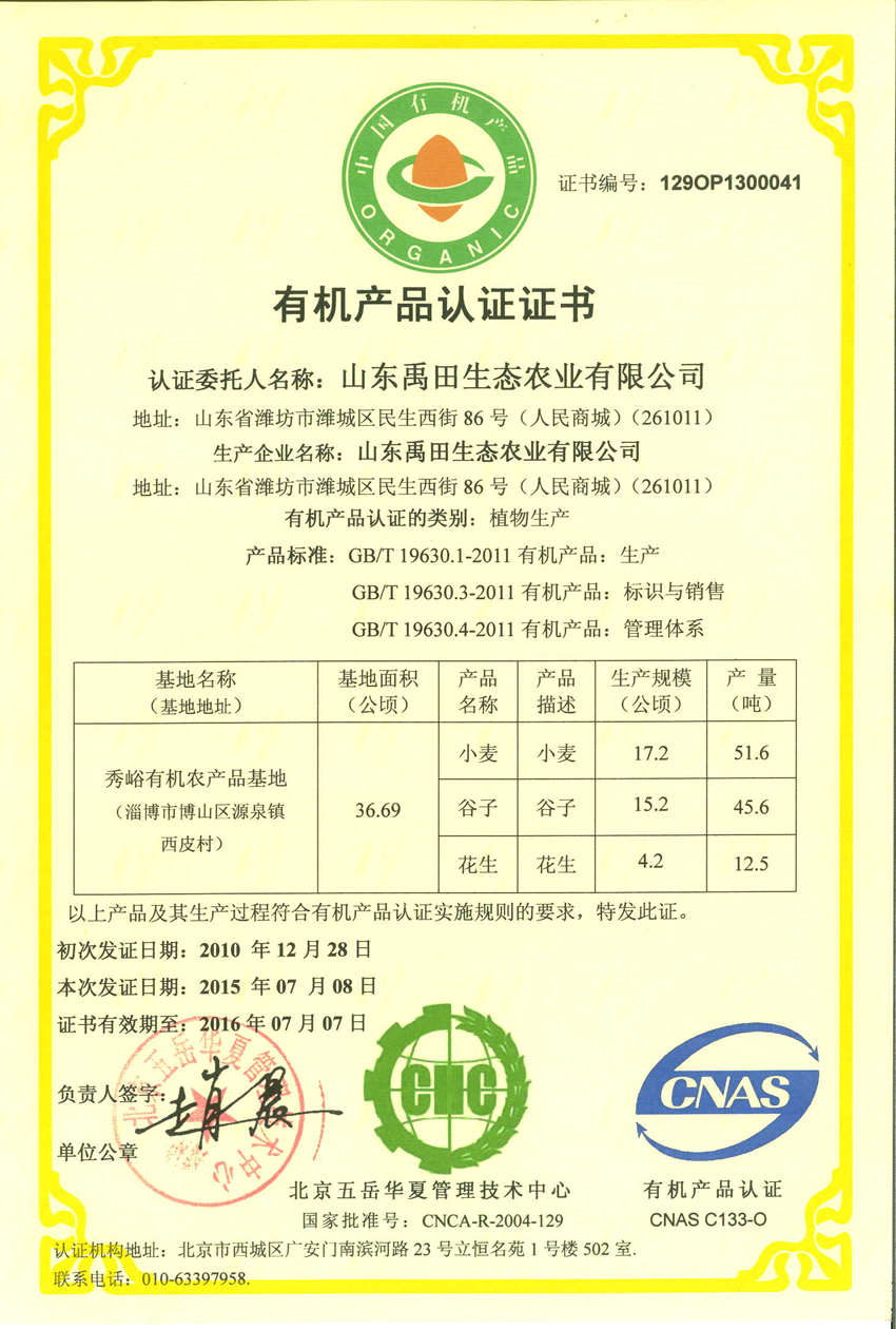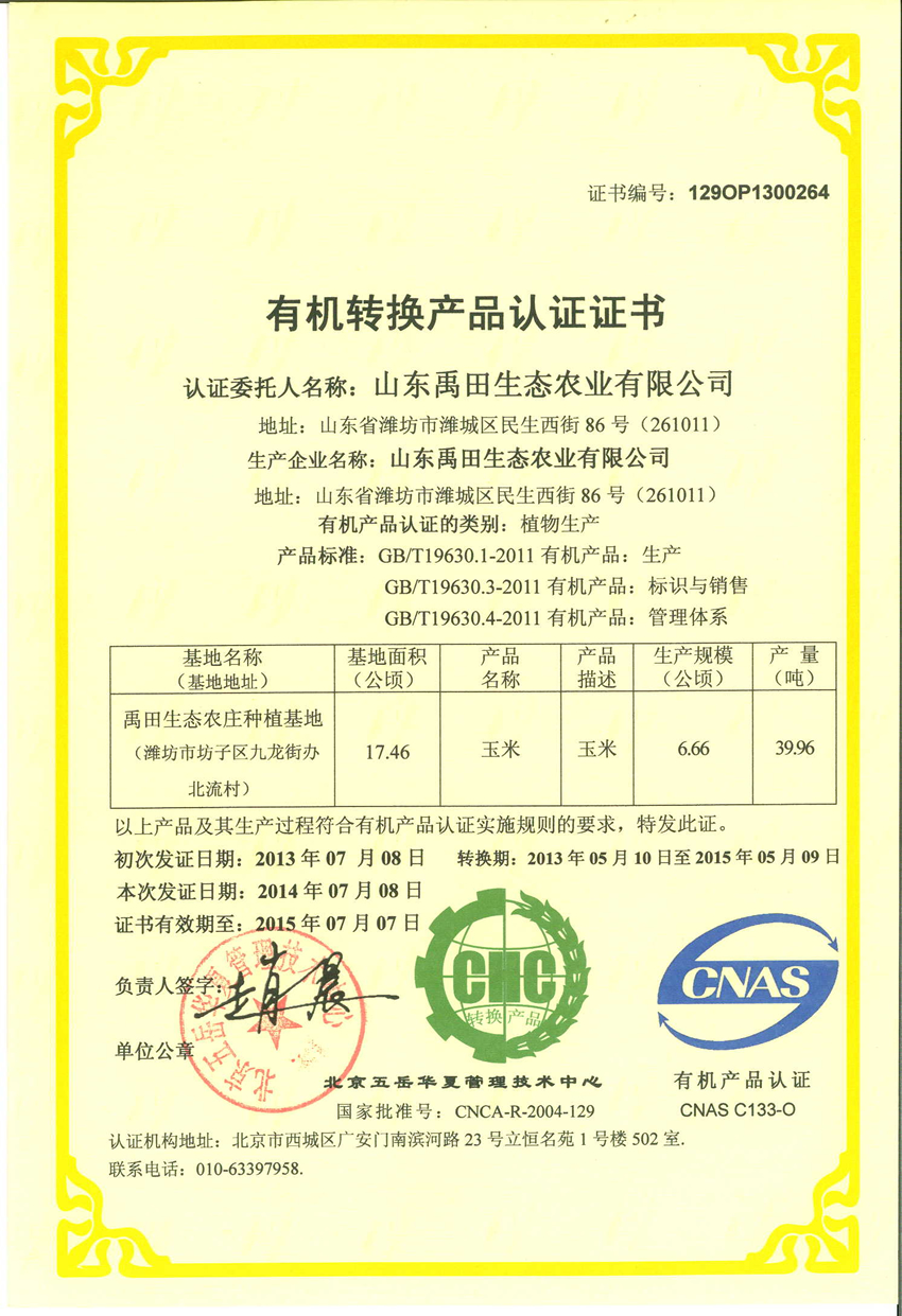 有機產品認證—2014-2