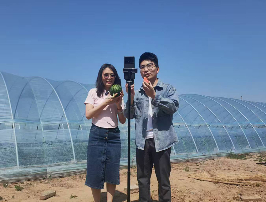 圖為FREE LAND正在西瓜源頭直采地直播