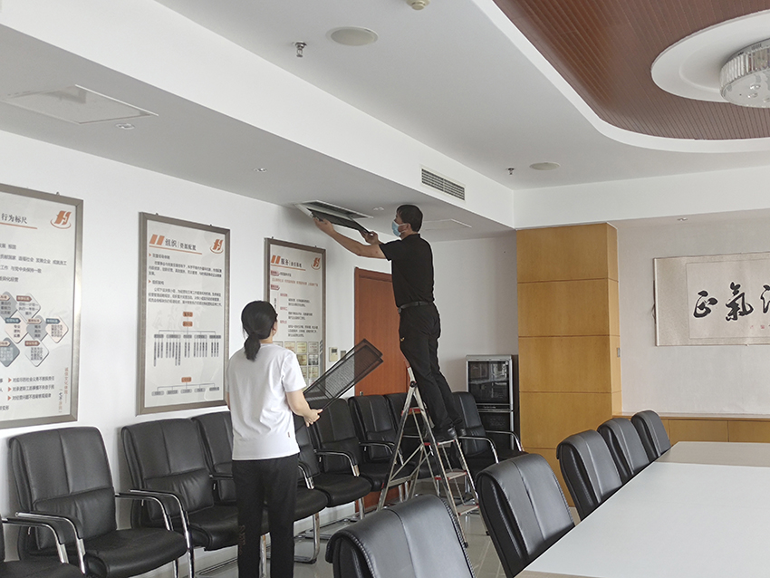 盛夏來臨之際,泰和大廈用電管理小組踐行公司“勤儉持家”經(jīng)營理念,主動(dòng)對區(qū)域內(nèi)空調(diào)風(fēng)口全部進(jìn)行清洗,以提高空調(diào)效能、降低能耗、節(jié)省用電。